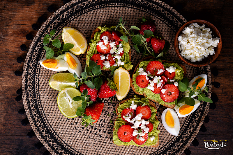 Az avokádó, a feta sajt és az eper különös házassága ebben a reggeliben szintén furcsának hathat elsőre, de légy bátor, próbáld ki!
