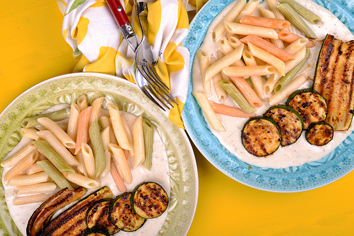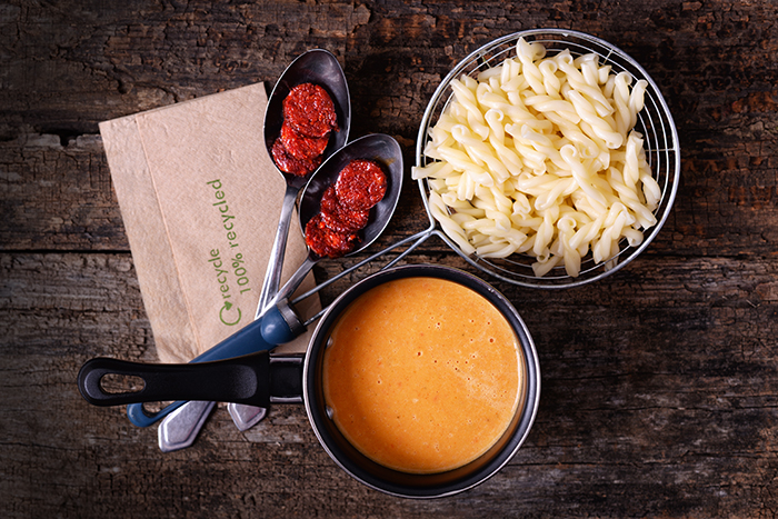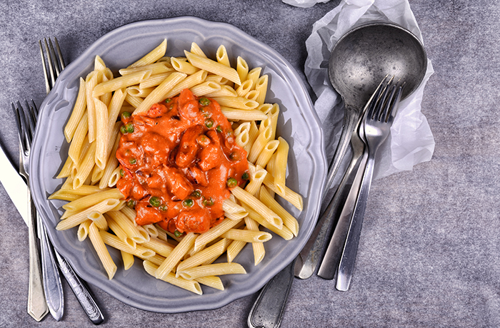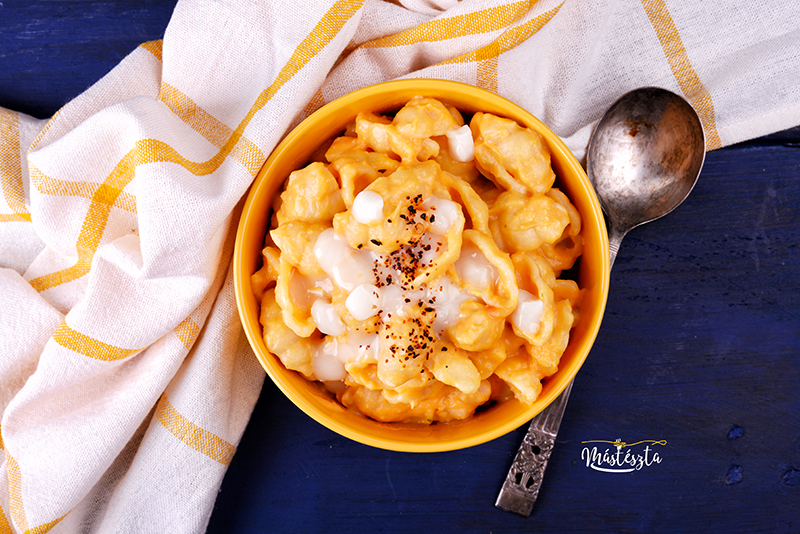 Hagymaszószos tészta kecskesajttal és füstölt chilipehellyel