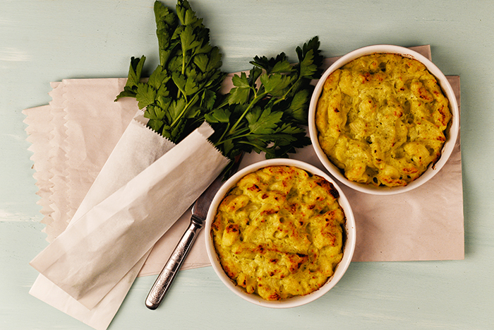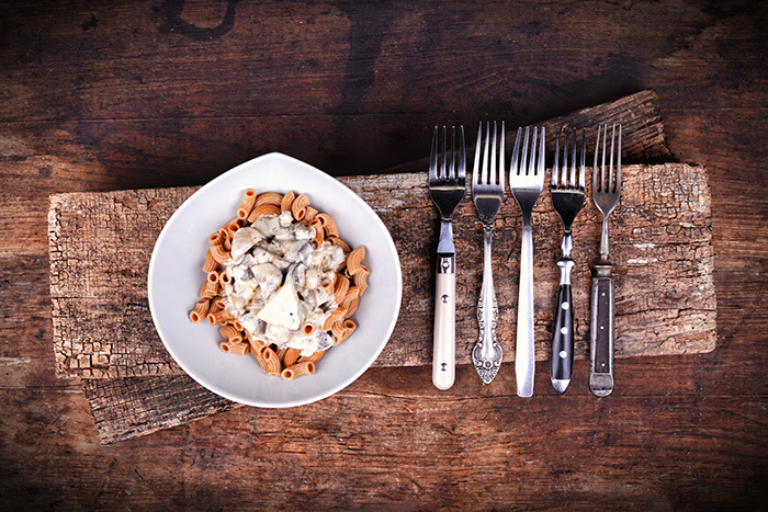 Gombás húspogácsa fokhagymakrémes gnocchi tésztával